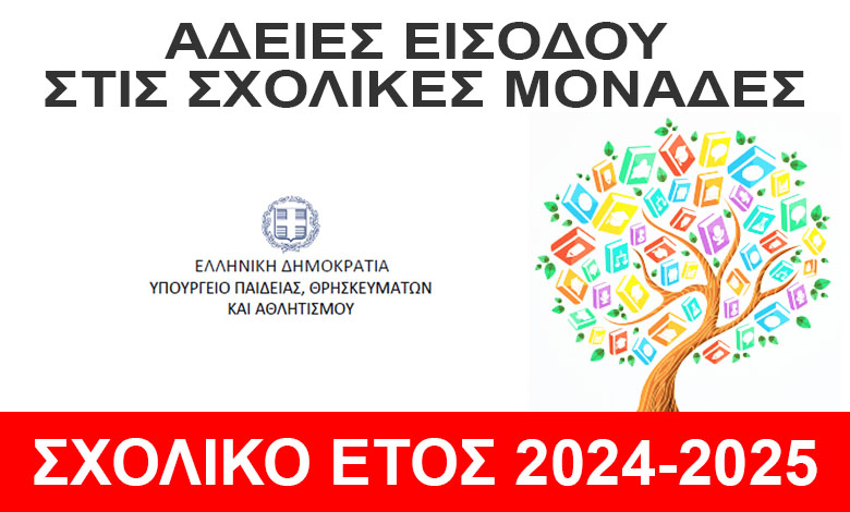 Άδειες εισόδου στις σχολικές μονάδες, για το σχολικό έτος 2024- 2025